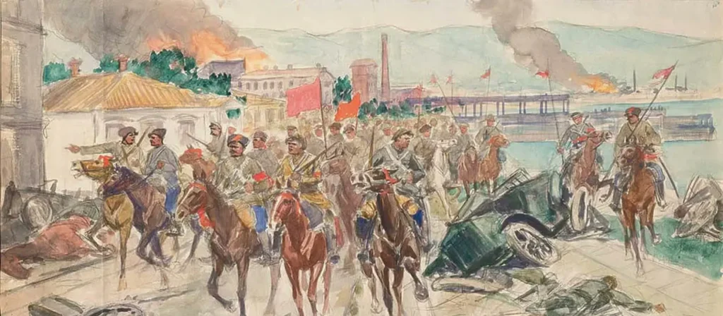 Ya desde el momento en el que Grigori, el protagonista de El Don apacible, llega al frente en los primeros días de la guerra, se vislumbra la irremediable caducidad del viejo modo de vida de la Rusia zarista. Una curiosa mezcla de sables y fusiles, de lanzas y metralla, de caballos y cañones, enredan en una danza mortífera a miles y miles de soldados, diminutos ante la moderna industria de guerra.